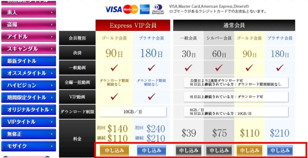次にお好きなプランを選択して、申し込みボタンを押してください